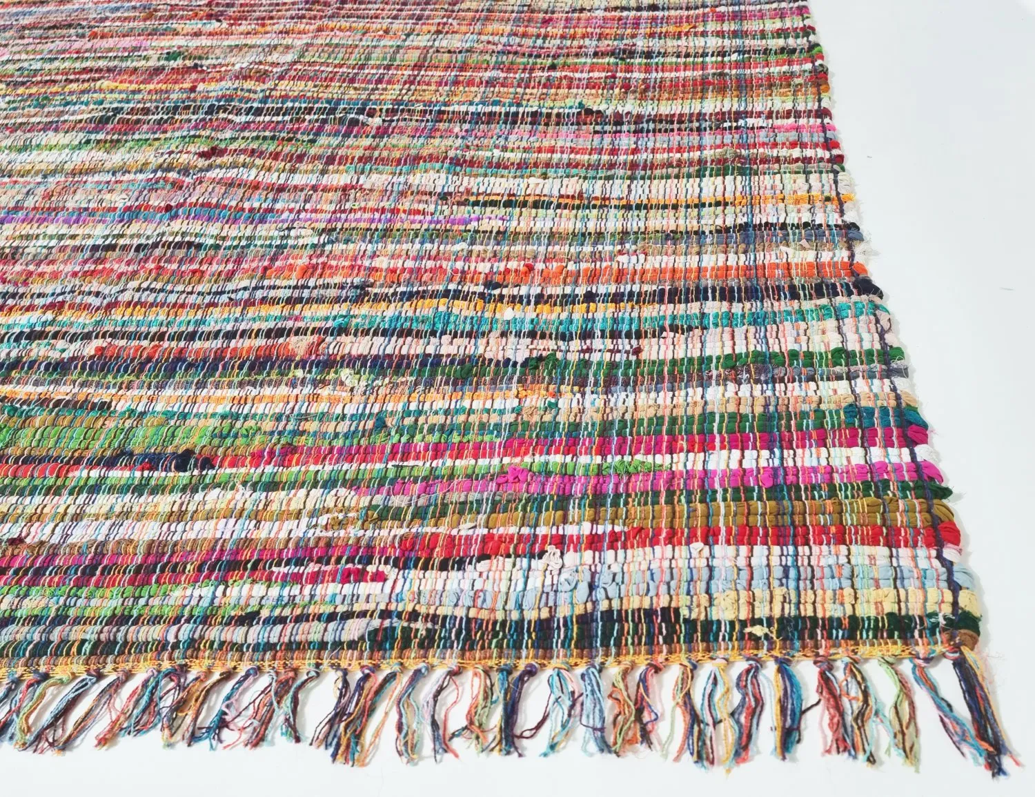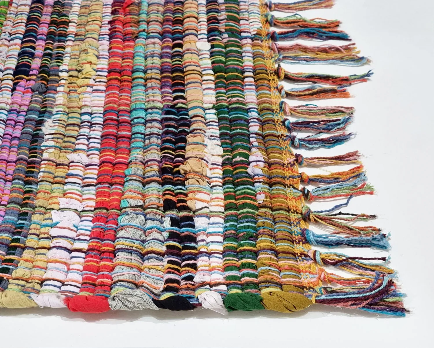 Handgewebter Flickenteppich aus 100% Baumwolle.