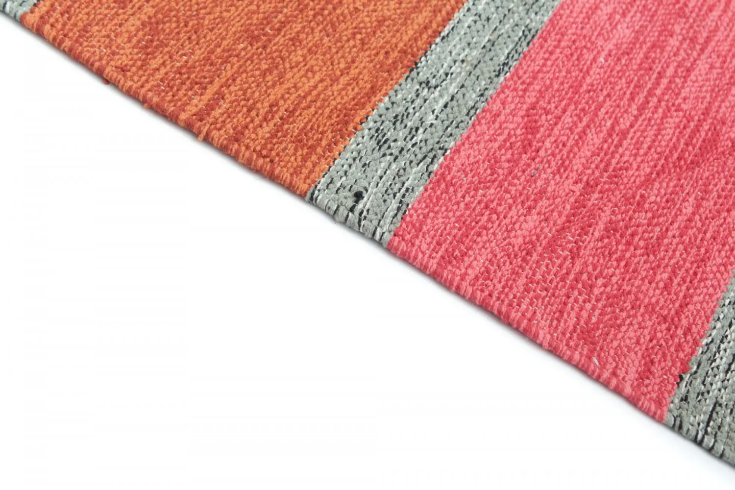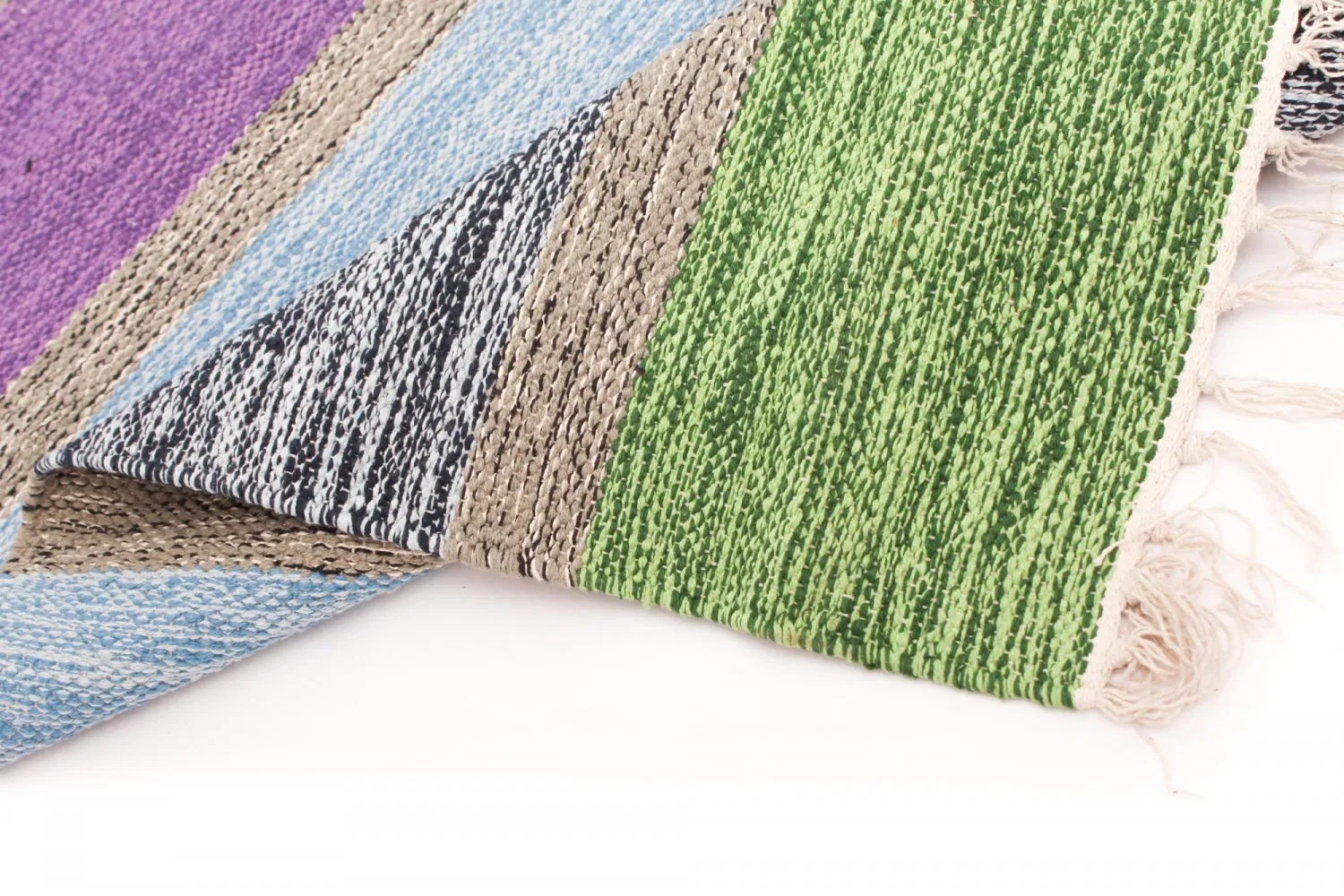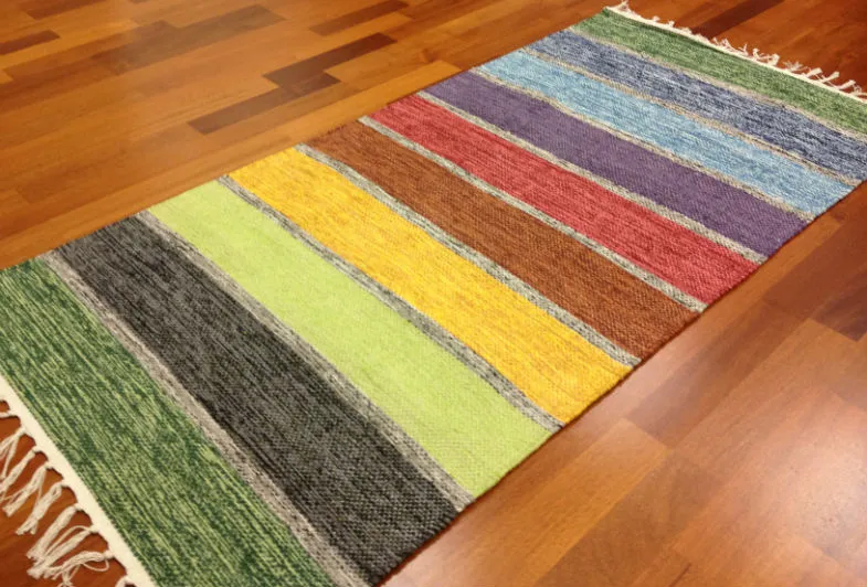 Handgewebter Flickenteppich aus 100 % Baumwolle.
