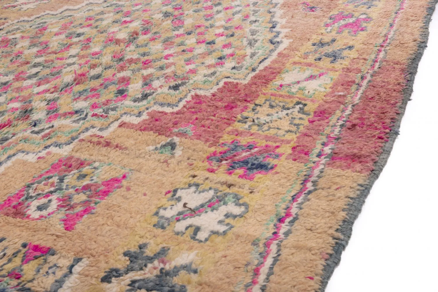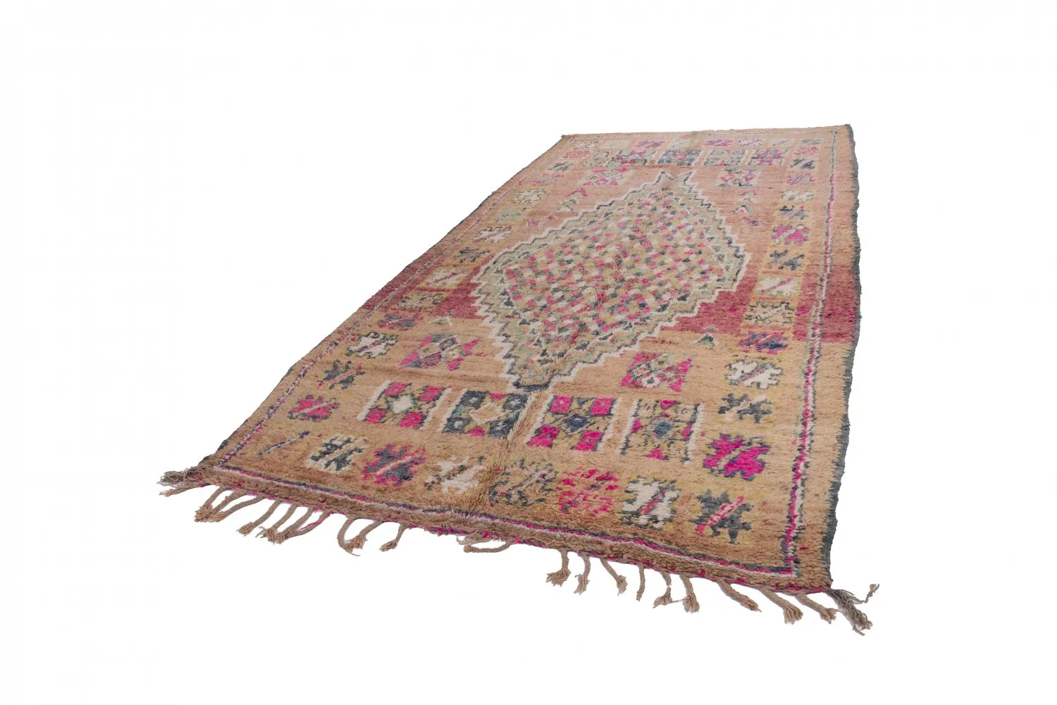 Kreativität und Ausführung, das unregelmäßige Muster und die fantastischen Farbkombinationen – die Geschmäcker sind verschieden. Vermutlich hätte aber kaum jemand etwas dagegen einzuwenden, wenn der Azilal-Teppich zum schönsten Teppich der Welt gekürt würde. Seiner einzigartigen Wirkung kann man sich nur schwer entziehen. Außerdem besteht er zu 100 % aus natürlichen Erzeugnissen. Der weiße/naturfarbene Hintergrund besteht aus der Wolle der Bergschafe und die klaren Farben stammen von wild wachsenden Pflanzen und Beeren der atemberaubenden Bergwelt in der Azilalregion.