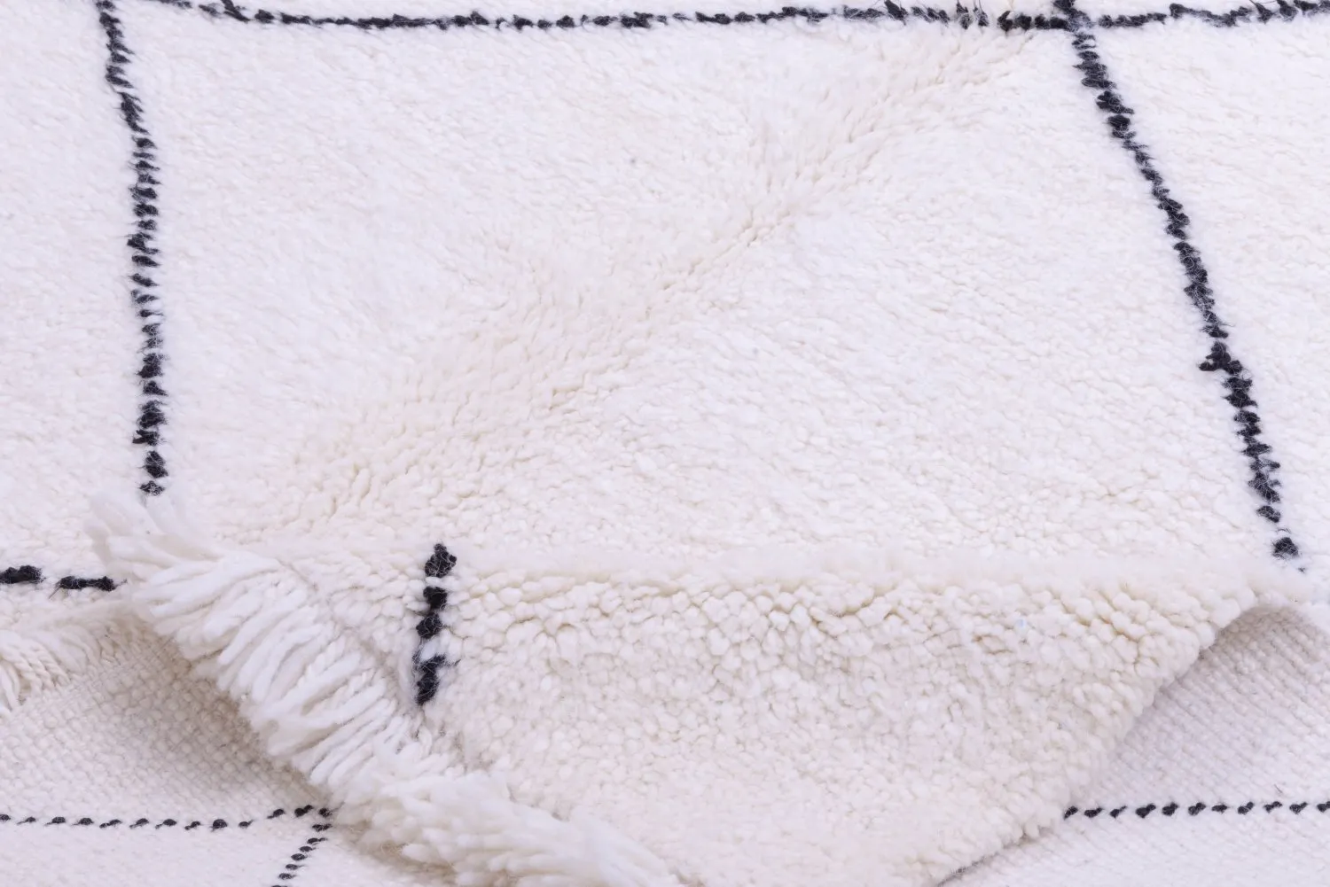 Die Wolle der Schafe im Atlasgebirge ist einfach unvergleichlich. Ein Beni-Ourain-Teppich besteht nur aus dieser Wolle und ihren natürlichen Farben Weiß und Elfenbein sowie Naturfarben. Ein echter Beni-Ourain-Teppich wird mit schlichten, raffinierten Mustern gewebt. Er ist bei Designern und Käufern weltweit sehr gefragt. Ein echter Beni-Ourain ist ein Kunstwerk für den Fußboden. Bei sorgfältiger Pflege behält der Teppich seine schönen Farben, die Wolle ist unverwüstlich. Ein Teppich, der von Generation zu Generation weitergegeben wird.