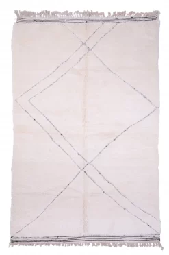 Die Wolle der Schafe im Atlasgebirge ist einfach unvergleichlich. Ein Beni-Ourain-Teppich besteht nur aus dieser Wolle und ihren natürlichen Farben Weiß und Elfenbein sowie Naturfarben. Ein echter Beni-Ourain-Teppich wird mit schlichten, raffinierten Mustern gewebt. Er ist bei Designern und Käufern weltweit sehr gefragt. Ein echter Beni-Ourain ist ein Kunstwerk für den Fußboden. Bei sorgfältiger Pflege behält der Teppich seine schönen Farben, die Wolle ist unverwüstlich. Ein Teppich, der von Generation zu Generation weitergegeben wird.