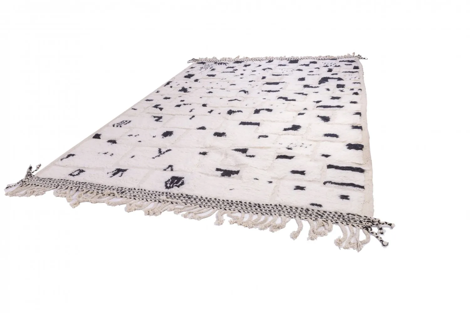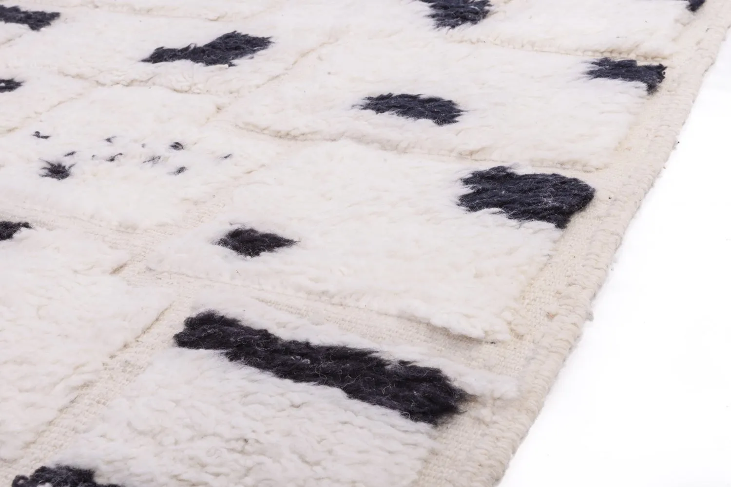Die Wolle der Schafe im Atlasgebirge ist einfach unvergleichlich. Ein Beni-Ourain-Teppich besteht nur aus dieser Wolle und ihren natürlichen Farben Weiß und Elfenbein sowie Naturfarben. Ein echter Beni-Ourain-Teppich wird mit schlichten, raffinierten Mustern gewebt. Er ist bei Designern und Käufern weltweit sehr gefragt. Ein echter Beni-Ourain ist ein Kunstwerk für den Fußboden. Bei sorgfältiger Pflege behält der Teppich seine schönen Farben, die Wolle ist unverwüstlich. Ein Teppich, der von Generation zu Generation weitergegeben wird.