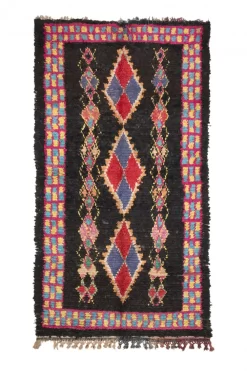 Der Boucherouite-Teppich reiht sich in die fantastischen Teppichkreationen ein, die aus Marokko kommen. Als Flickenteppich wird er aus gebrauchten Textilien wie Wolle, Garn, Kunstfasern und anderen Textilmaterialien hergestellt, die wiederverwertet werden können. Dieser wunderschöne marokkanische Flickenteppich ist das Ergebnis der Veränderungen, die in den letzten Jahren in Marokko auf dem Land stattgefunden haben, wo die herkömmlich nomadische Kultur fester Landwirtschaft und anderen Formen des Broterwerbs gewichen ist. Hierdurch ist die kostbare Schurwolle, das Material der Beni-Ourain- und Azilal-Teppiche, noch seltener geworden. Deswegen ist es umso wichtiger, gebrauchte Textilien wiederzuverwerten. Die marokkanischen Frauen auf dem Land haben hierin unvergleichliche Fähigkeiten entwickelt. Die Farben und das Muster des Boucherouite-Teppichs kennen wir bereits vom Azilal-Teppich. Beide Teppiche sind auf Kunstausstellungen weltweit zu sehen.
