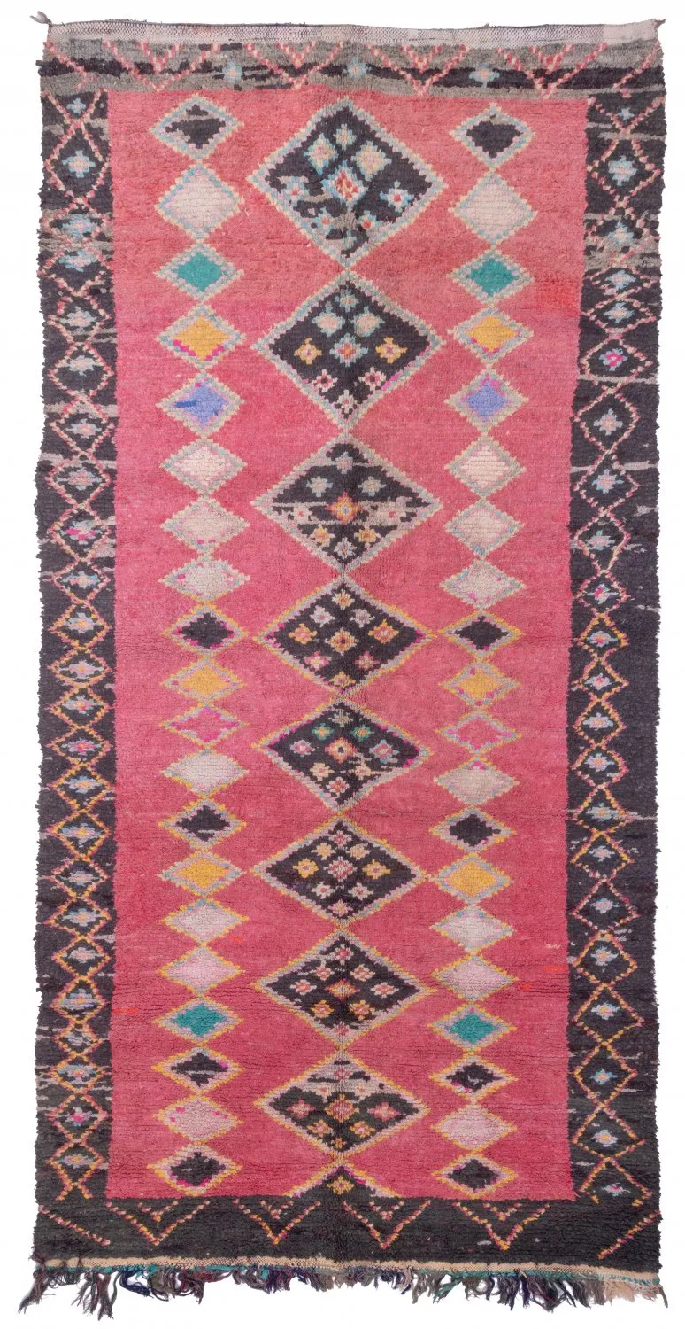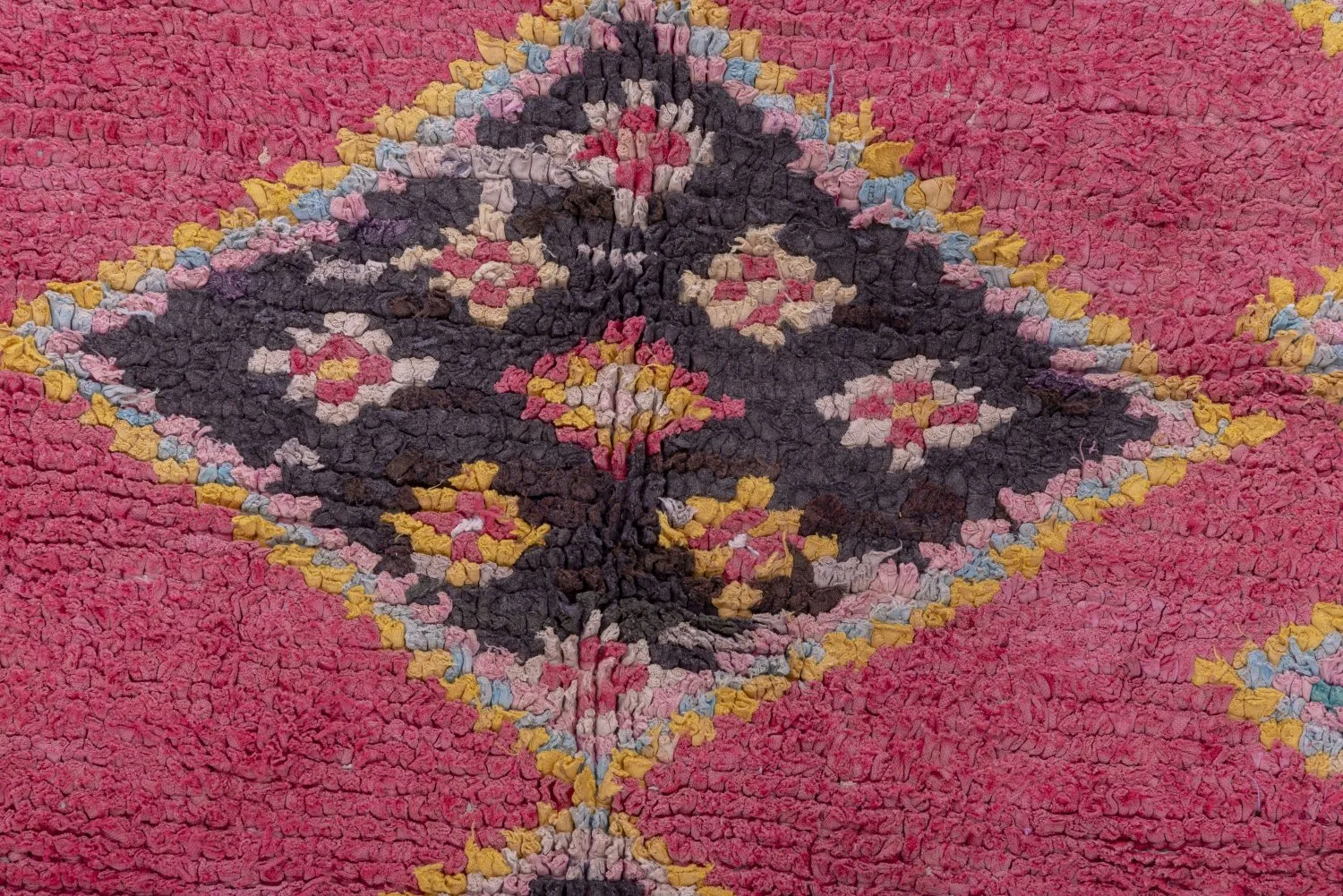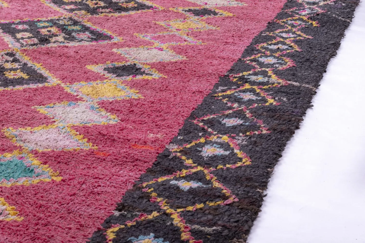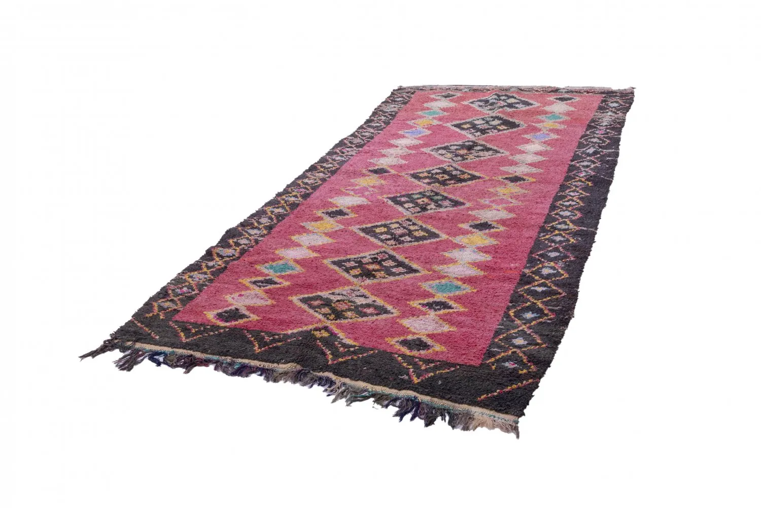 Der Boucherouite-Teppich reiht sich in die fantastischen Teppichkreationen ein, die aus Marokko kommen. Als Flickenteppich wird er aus gebrauchten Textilien wie Wolle, Garn, Kunstfasern und anderen Textilmaterialien hergestellt, die wiederverwertet werden können. Dieser wunderschöne marokkanische Flickenteppich ist das Ergebnis der Veränderungen, die in den letzten Jahren in Marokko auf dem Land stattgefunden haben, wo die herkömmlich nomadische Kultur fester Landwirtschaft und anderen Formen des Broterwerbs gewichen ist. Hierdurch ist die kostbare Schurwolle, das Material der Beni-Ourain- und Azilal-Teppiche, noch seltener geworden. Deswegen ist es umso wichtiger, gebrauchte Textilien wiederzuverwerten. Die marokkanischen Frauen auf dem Land haben hierin unvergleichliche Fähigkeiten entwickelt. Die Farben und das Muster des Boucherouite-Teppichs kennen wir bereits vom Azilal-Teppich. Beide Teppiche sind auf Kunstausstellungen weltweit zu sehen.