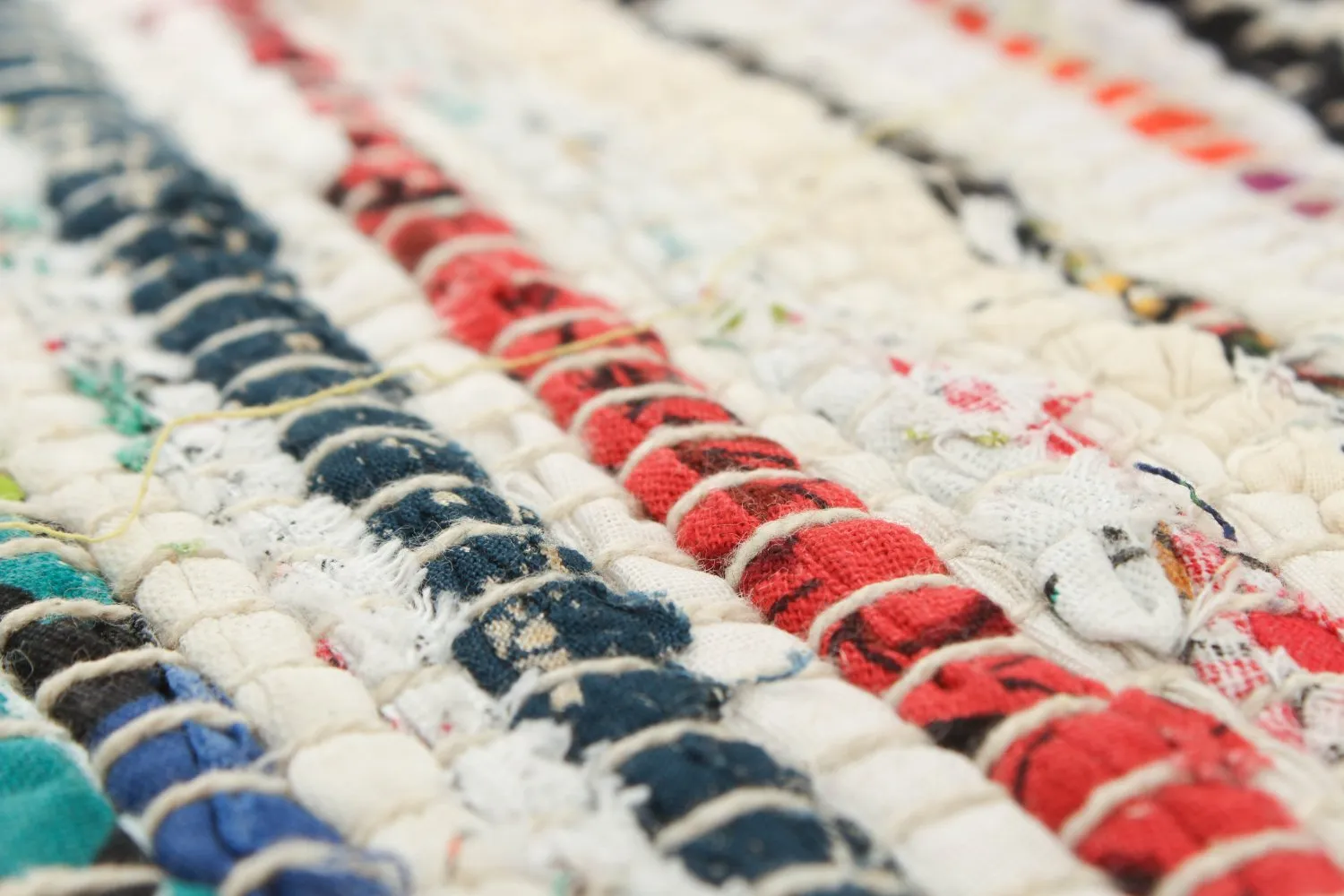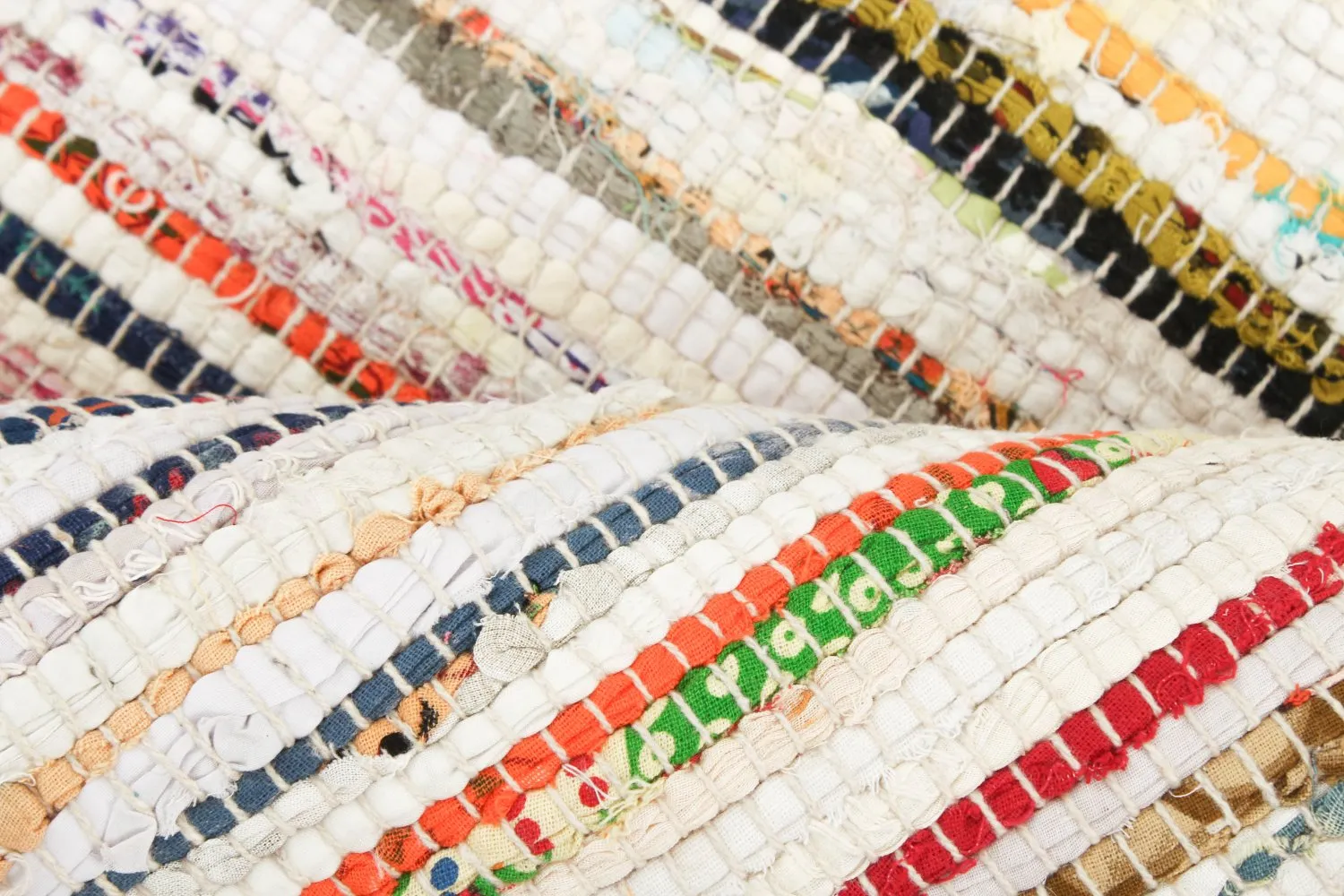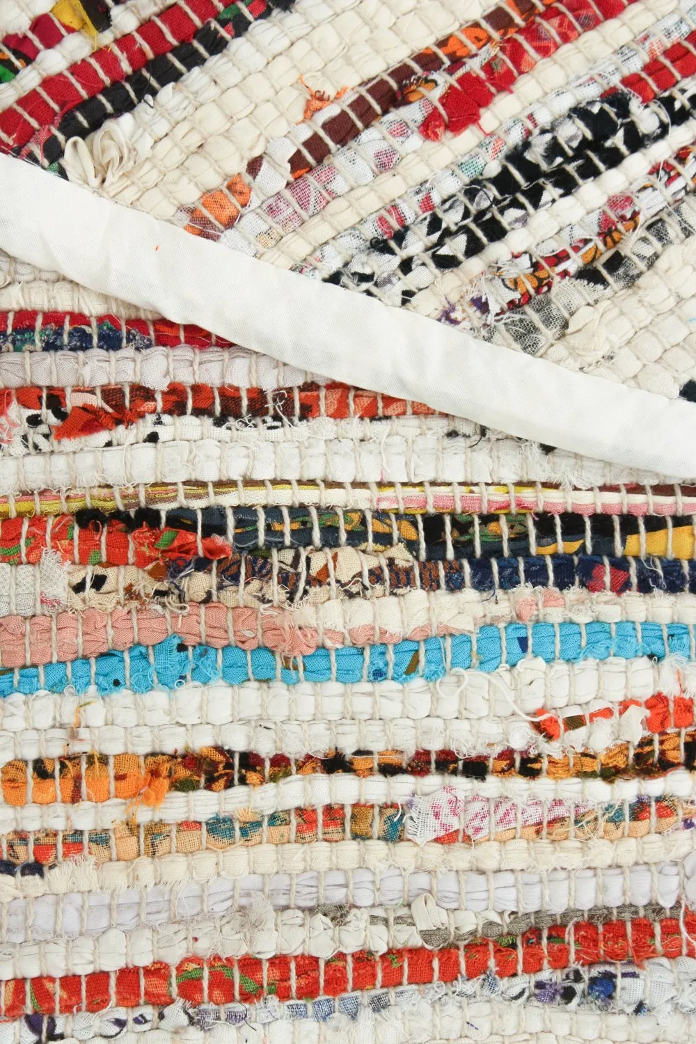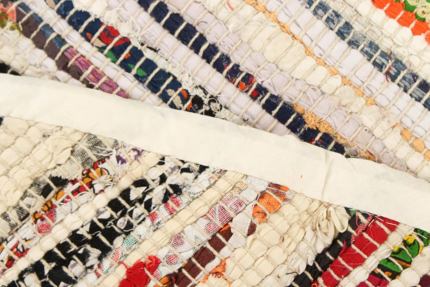 Handgewebter Flickenteppich aus 100% Baumwolle.