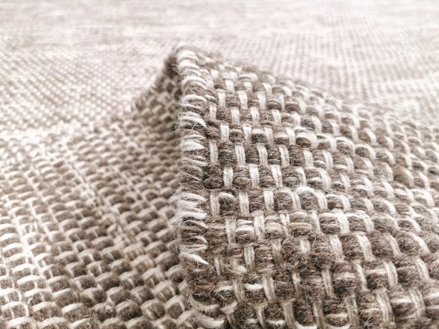Flach gewebter Teppich aus Wolle. Wollteppich mit einem dünnen und schönen Schnitt. Einzigartige Qualität. Leicht zu bewegen. Liegt fixiert und flach auf dem Boden. Vermittelt ein Gefühl der Herkunft.